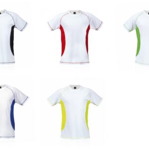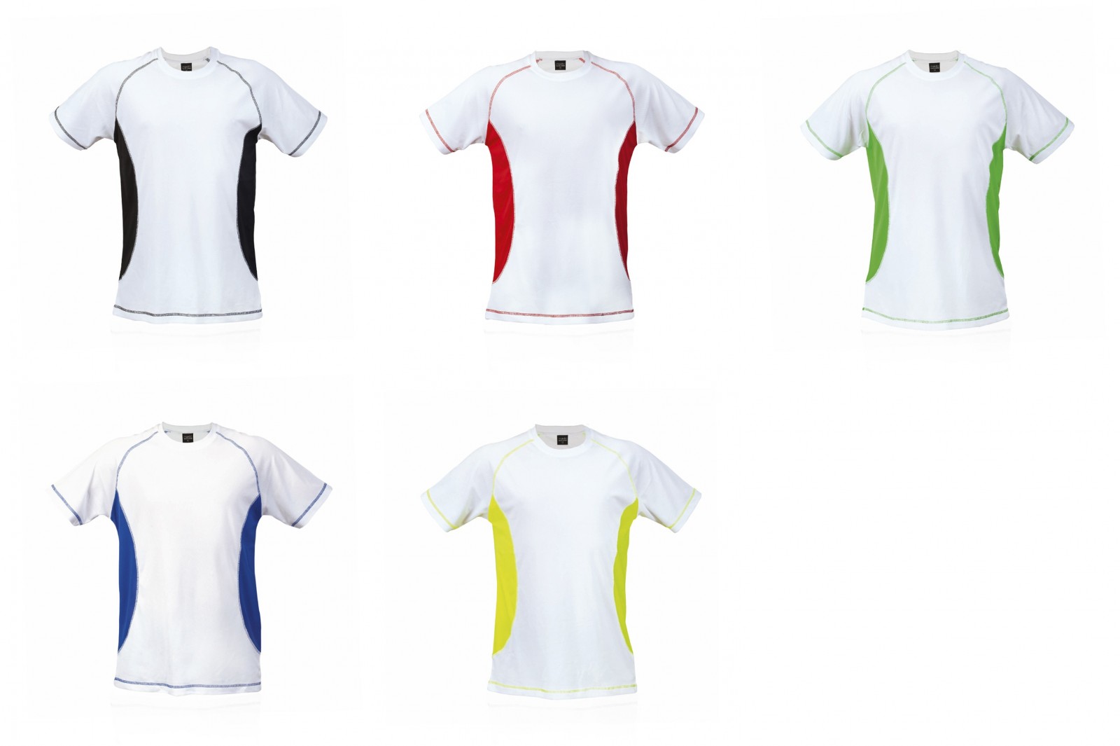 Camiseta técnica para adulto en material transpirable poliéster de 135g/m2. Costuras de refuerzo y laterales de colores.