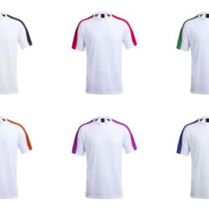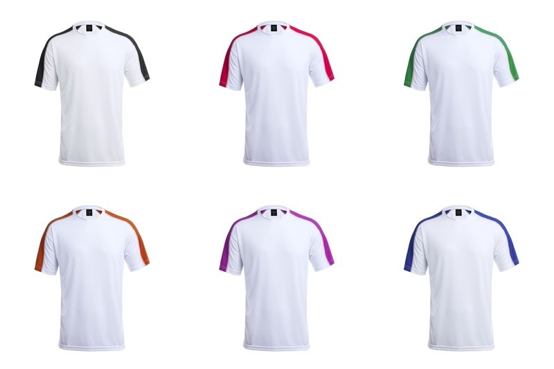 Camiseta técnica para adulto en material dynamic, altamente transpirable y confeccionada en tela 100% poliéster de 135g/m2. Original diseño en color blanco, con franja de color en las mangas. Disponible en variados colores