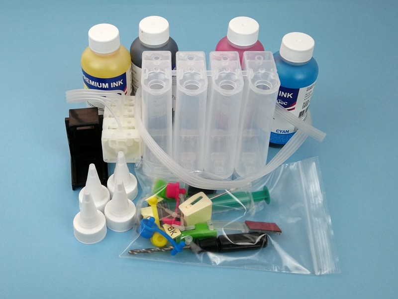 Sistema de suministro continuo de tinta para todas aquellas impresoras HP de la serie Deskjet que utilicen los cartuchos 300 o 300XL, pack con tinta.
