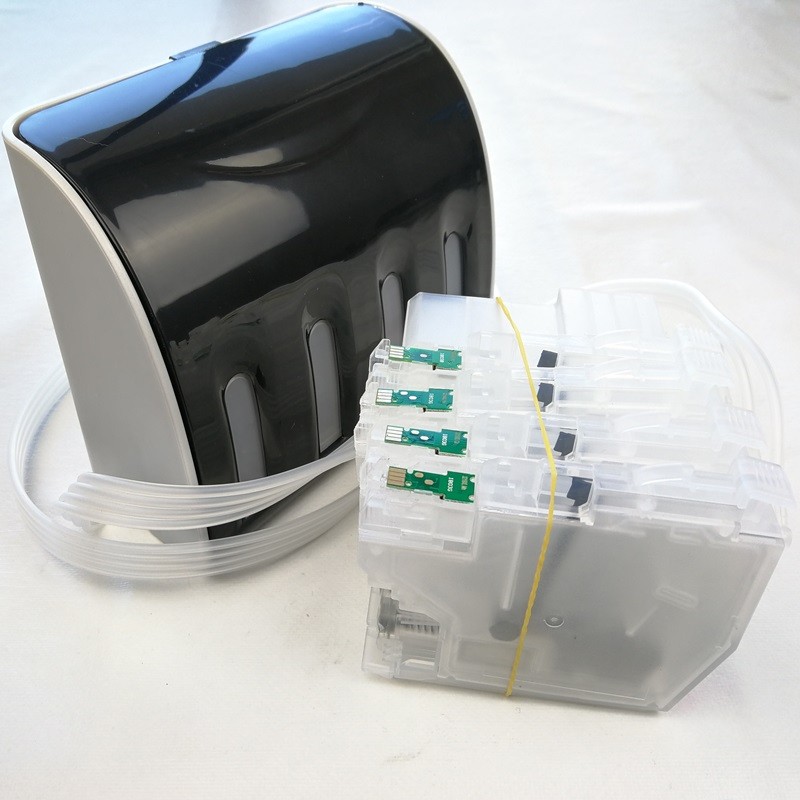 CISS o Sistema de suministro continuo de tinta para impresoras Brother que utilizan el modelo de cartucho LC3217 y LC3219. Los cartuchos incorporan un chip de un solo uso LC3219XL, los cuales deberán reiniciarse para su nuevo uso con el reseteador específico de este modelo una vez agotados, incluido en este kit.
