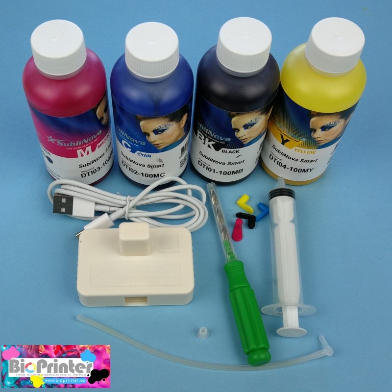 Conjunto de accesorios necesarios para la recarga de los cartuchos Epson 604, 604XL, 503, 503XL incluye reseteador del chip y 400ml de tinta de sublimación.