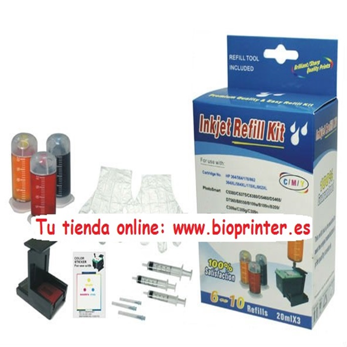 Kit recarga de tinta COLOR para los cartuchos HP 62, HP 62XL. Nunca a sido mas fácil recargar un cartucho que con este kit completo con todo lo necesario para optimizar el rendimiento de tus cartuchos HP 62.