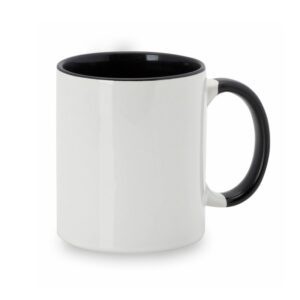 Taza de cerámica de 350ml personalizable con interior y asa de color. Se puede personalizar a través de la técnica de la sublimación con cualquier imagen impresa.